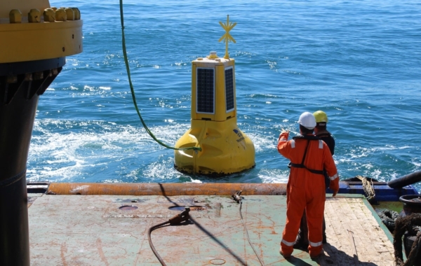 Prestation NortekMed : NortekMed a déployé une bouée Alizé temps réel équipée d’un courantomètre profileur longue portée Signature 55kHz, avec une transmission par GPRS. Les données de courant ont servi au calage d’un modèle numérique de prévision permettant d’organiser le planning des opérations de dragage.