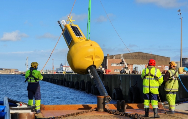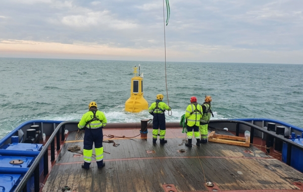 Prestation NortekMed : NortekMed a déployé une bouée Alizé metocean avec transmission par iridium. Les données océanographiques et météorologiques transmises en temps réel et/ou stockées seront nécessaires à la conception et au dimensionnement de la future ferme éolienne.